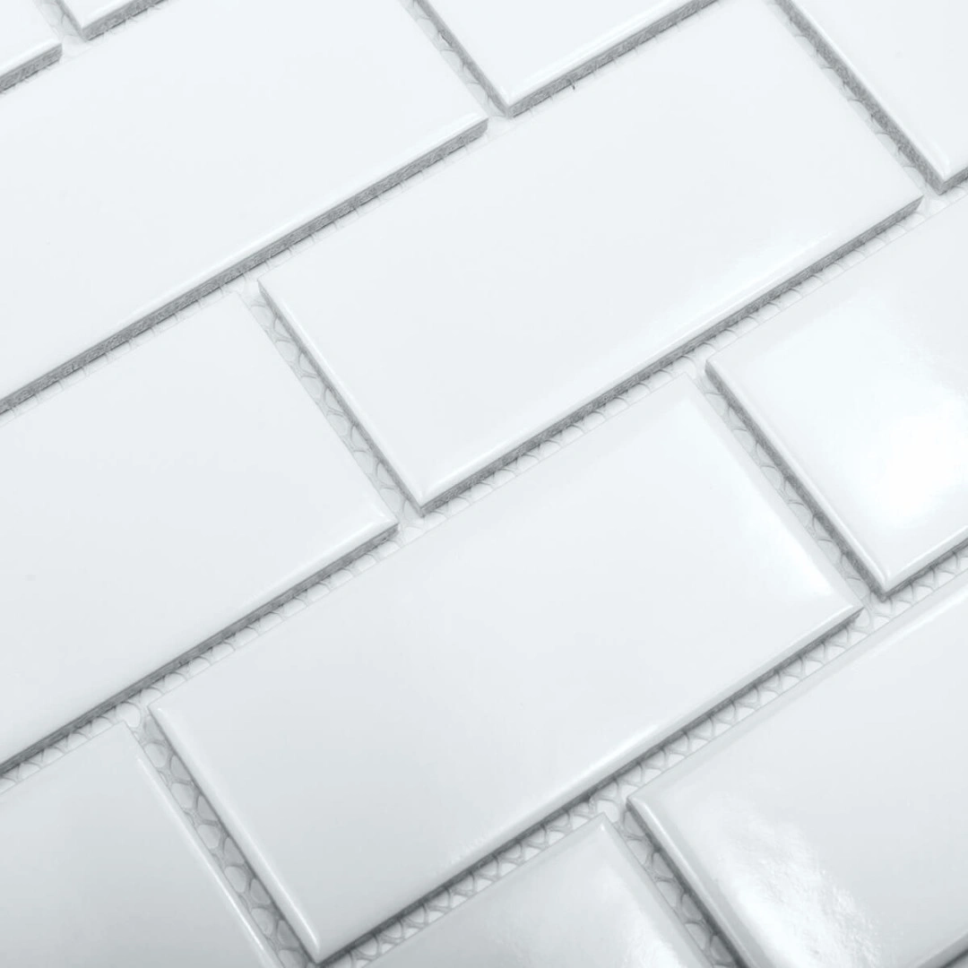Керамическая мозаика из коллекции Brick & Metro от KERAMAWORLD в цвете Brick White Glossy. Плитка размером 29,5×29,1 см с глянцевой поверхностью и толщиной 6 мм изготовлена из керамогранита. Плитка установлена на сетчатом основании для удобства укладки. В упаковке содержится 20 плиток, которые в сумме покрывают площадь 1,695 м². Общий вес упаковки составляет 21,34 кг. Размер чипа мозаики – 45×95 мм.