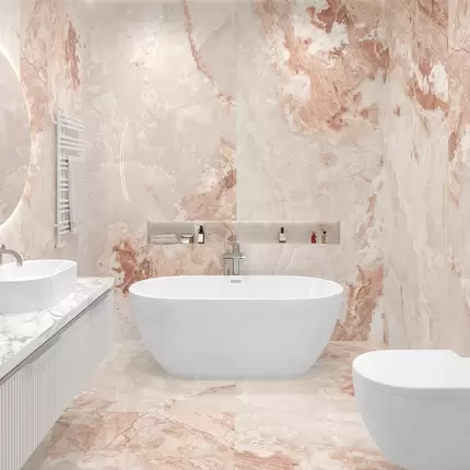 Керамогранитный слэб от KERAMAWORLD с матовым покрытием SOFT SATIN. Прекрасно подходит для стильных и долговечных интерьеров. Размеры: 280×120 см, толщина 6 мм. В упаковке 3.36 м², вес 53.122 кг.